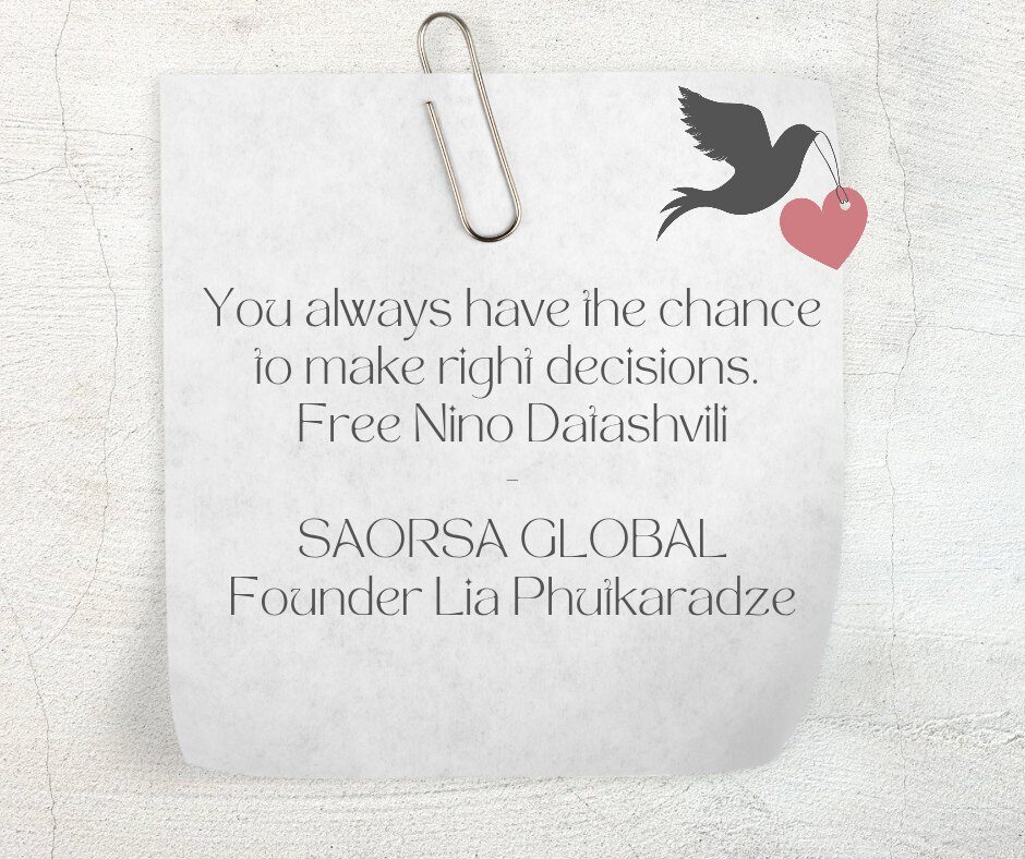 Lia Putkaradze, founder of Saorsa Global, expresses solidarity with prisoner of conscience Nino Datashvili and notes that even though the Georgian nation has experienced many unjust decisions in the courtroom, there is always a chance for judges to make the right decisions. “Today is the day,” says Lia Putkaradze, regarding Nino Datashvili’s trial.